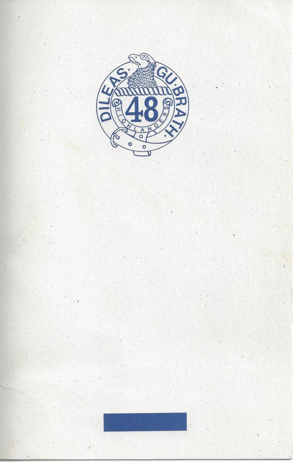 – Program 48th Highlanders of Canada Remembrance Day Dinner 1990, 1991 or 1992 Menu and Toasts inside and separate insert Remembrance Day by Jeannine Paris Burr 17 years old Andy Lemesurier’s copy