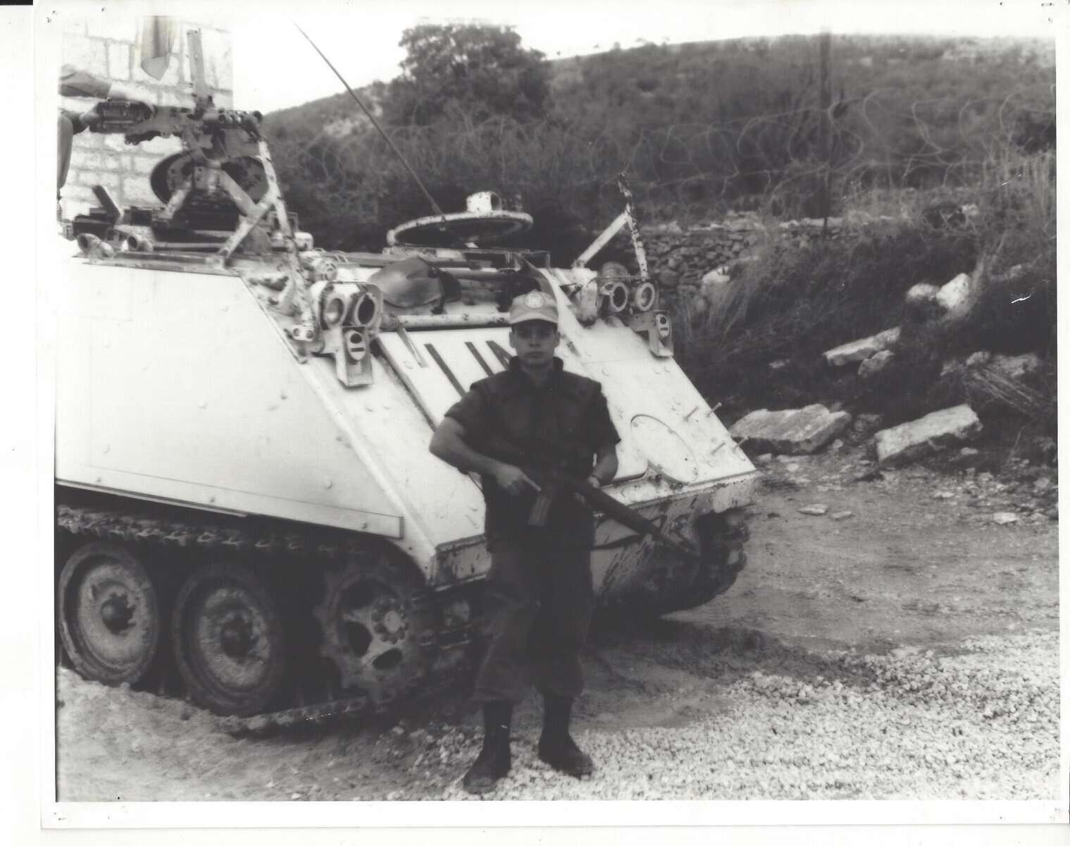 Pte Rob Mason with rifle in front of M113 on UN Peacekeeping Tour in Yugoslavia, 1994. Members of Canada’s Reserves volunteer for UN and NATO missions in which Canada participates to fill gaps in the rolls of the regular forces.