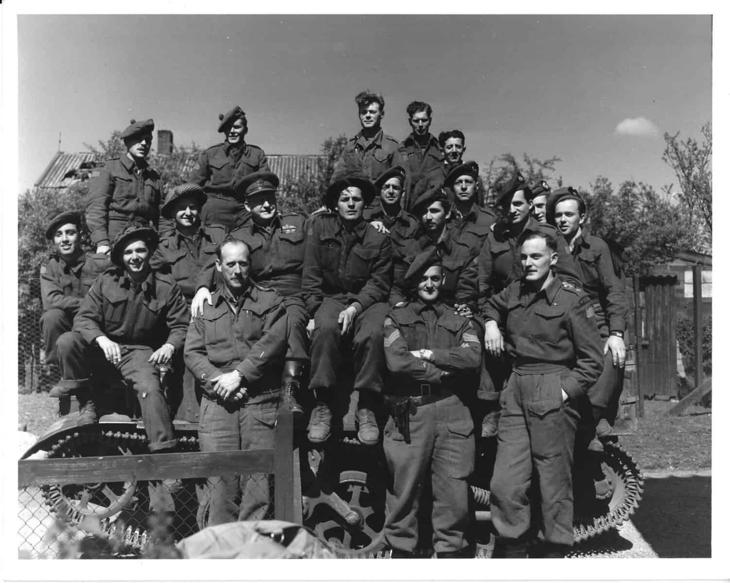 1st Battalion, 48th Highlanders’ sports team at the 1st Canadian Division competition at The Hague, Holland 1945. Leo Trudelle, Gord Outhwaite (Center in front kneeling row) and Joe Kirk.