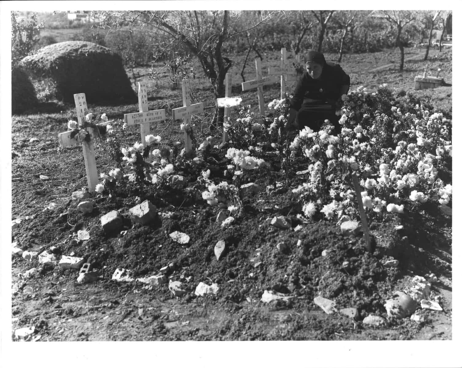 Women decorating graves of Canadian soldiers, Campobasso, Italy, 26 November 1943. During the war the Italian population maintained many cemeteries and placed flowers on graves to thank the Canadians for their freedom. P0580 Graves of B75300 Pte L F McArthur,