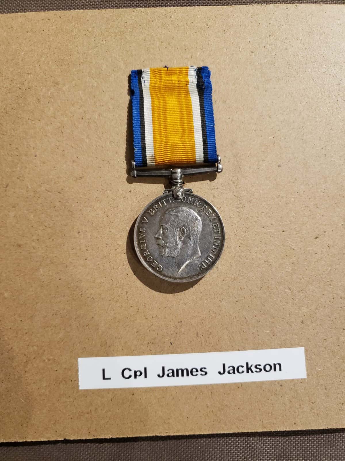27803 LCpl James Jackson, 15th Battalion CEF British War Medal 1914 – 1918. Medal only, no ribbon ribbon replaced and mounted for display in Case 46 medals