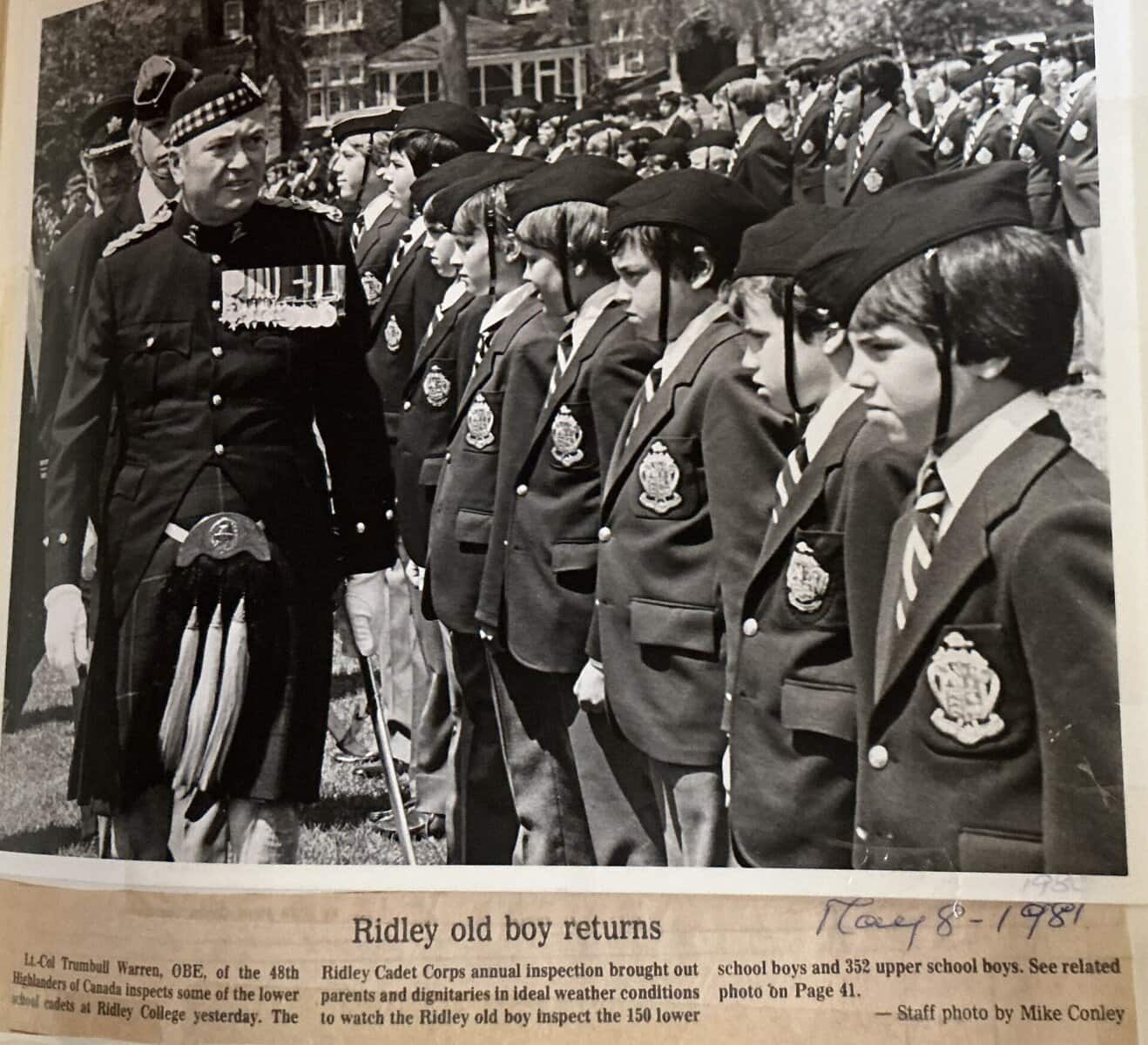 LCol Trumbull Warren, OBE inspects Ridley College cadets – 1981