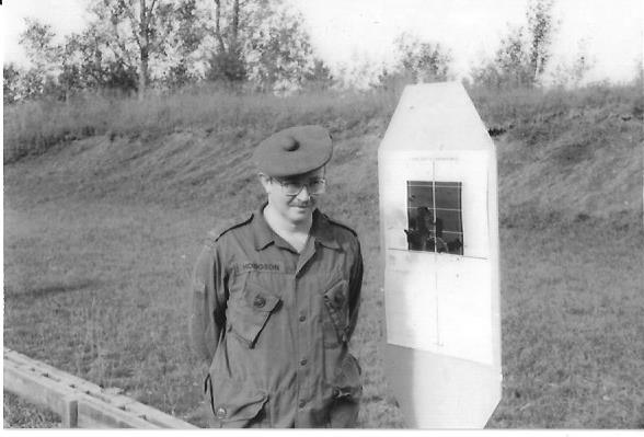 WO Fred Hodgson, Pipes and Drums, by target on the ranges at CFB Borden in 1980s or 90s.