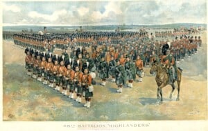 Lithograph of the original painting of the 48th Battalion (Highlanders) in full scarlet dress uniform, displayed in the museum. Under the painting on the left side: ‘Supplement to the Christmas Globe, 1899’.