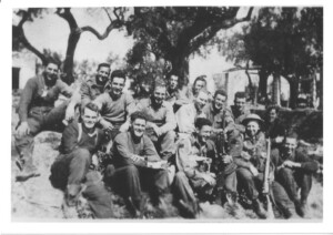7 Platoon “A” Company, 48th Highlanders. Lt. Bill Hunter Platoon Commander. This group had been on a fighting patrol the previous night penetrating the German Lines in the Arielli River area to determine the enemy strength. “If lightly held we were to capture the position. It was heavily defended so we fired a magazine of tracers, so the artillery could locate us. A second round of tracers, so that they could get a better fix on our position. They boxed us in and then opened the back door so that we could pull out.” March 1944, Gothic Line, Arielli River, Italy. Sgt. Herb Pike in rear by tree. P1458