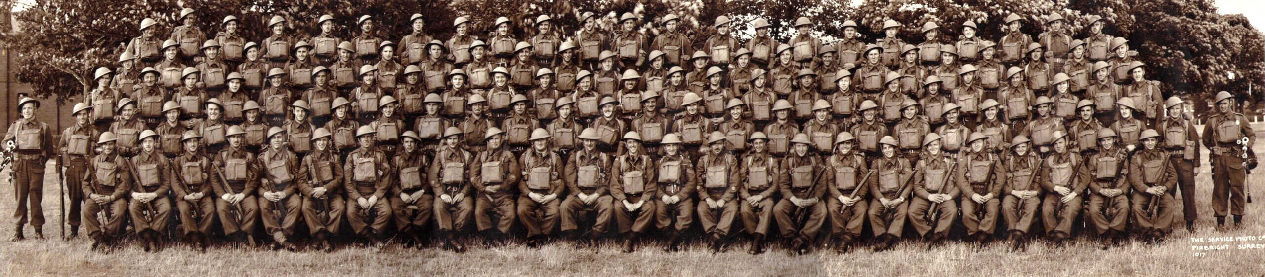 A 7 inch (17.78 cm) by 28 inch (71.12 cm) sepia toned photo of the 1st Battalion, 48th Highlanders of Canada, D Company, England, June 1940.