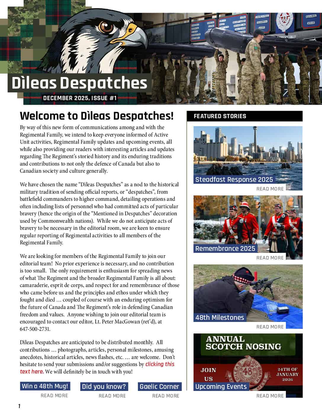 Dileas Despatches – December 2025. 8 1/2″ x 11″ Published in December 2025.