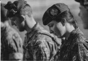 Female member of the 48th Highlanders of Canada training with the 4 Bn, Royal Regiment of Scotland. Training was joined while she was studying Physics at University of Aberdeen. The Royal Regiment of Scotland was created by amalgamating the Highland regiments in Scotland into one unit. The Gordon Highlanders, with whom in May 1904, the 48th Highlanders had the first formal alliance between a UK regiment and a unit in the Commonwealth, was one of the regiments amalgamated but retaining their distinctive uniforms and Gordon name within the RR of S. Small unit training between the RR of S and the 48th Highlanders has continued.