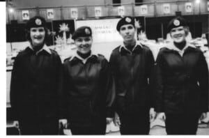 Four females from the 1980 Summer Course, Jeannette Goguen, Joyce Van der Vegte , Mary March and Loren Cosgrove. Joyce was the sister of Sgt John Van Der Vegte, and was a teacher on the astronaut Program. Loren Cosgrove subsequently joined the Regular Force and was a top student at Cornwallis.  Loren  joined the Military Police. She is the great niece of Sgt Maxwell McDougall, 2 Bn, 48th Highlanders and cousin of  WO Dianne Love and Stephen  Love and MCpl Phillip Rivers.