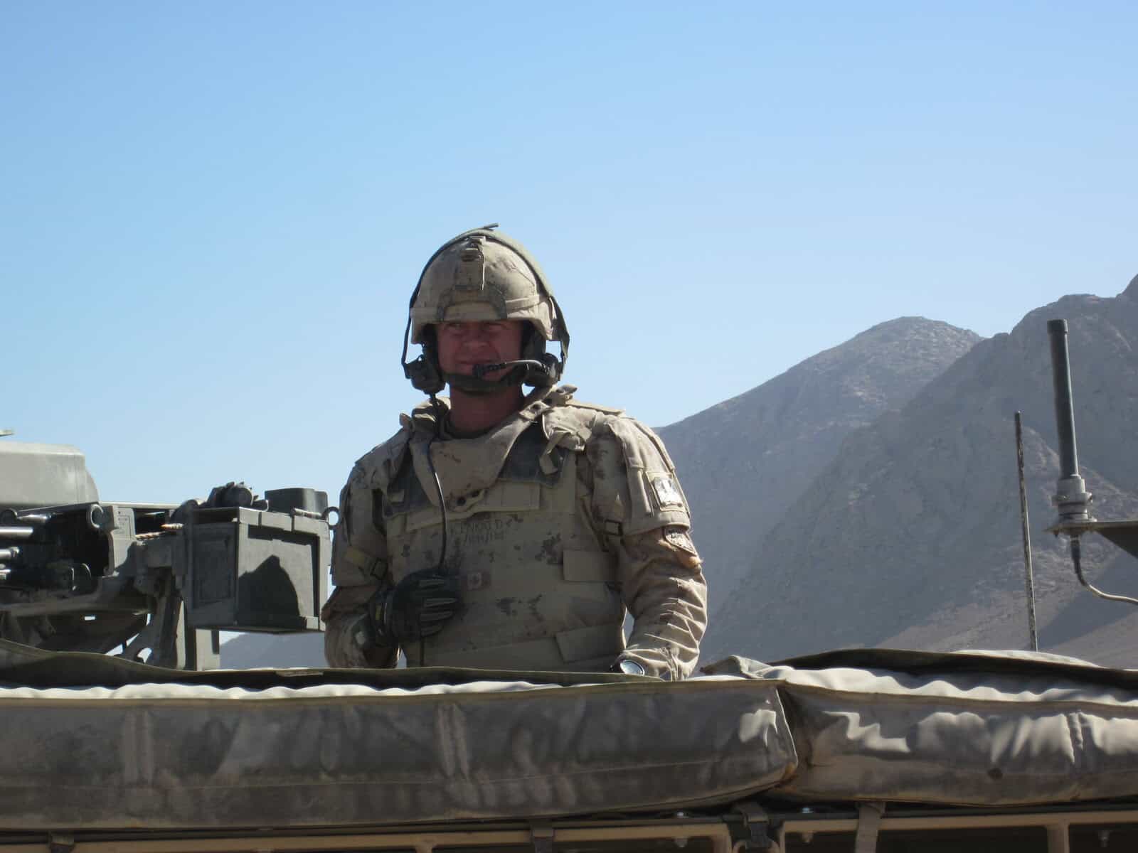 During an operation in Afghanistan MCpl Kinkaid is on the Comms of his TLAV. MCpl Kinkaid was serving in ROTO 9, 2010. After returning to the 48th Highlanders in Toronto he was promoted Sergeant with his first role of QM Stores.