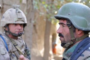 MCpl Iain Kinkaid on patrol with Afghanistan National Army Sergeant. MCpl Kinkaid was serving in ROTO 9, 2010. After returning to the 48th Highlanders in Toronto he was promoted Sergeant with his first role of QM Stores.