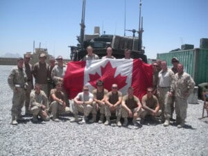 Operational Mentor Liaison Team (OMLT) Kandak One team photo taken at Forward Operation Base Terra Nova, Afghanistan. MCpl Iain Kinkaid was a member. MCpl Kinkaid was serving in ROTO 9, 2010. After returning to the 48th Highlanders in Toronto he was promoted Sergeant with his first role of QM Stores.