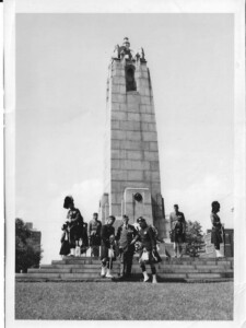 Officers assist veterans off Regimental Monument, Queen’s Park in 1950s. P1564