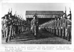 Marching up to their positions for the Trooping of the Colour, in Redhill Surrey, marking the 50th Anniversary of the Regiment’s founding in 1891, are members of Canada’s 48th Highlanders, …