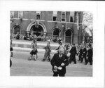 A roof-tip view of the 48th Highlanders Band marching past 519 Church Street for opening of the new 48th Highlanders Memorial Hall, 1946. The dedication and official opening ceremony was …