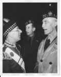 Three Highlanders speaking and renewing acquaintances, when the 1st Battalion, 48th Highlanders came back from overseas. The photo is after the dismissal parade of the 1st Battalion and is in …