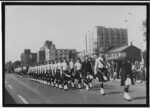B Coy marching in Garrison Church Parade in Toronto 1951. B Coy(48th) 1st Cdn Highland Bn. 27th Brigade. 1/C Capt. Pincoe, CSM Stan Clark
