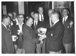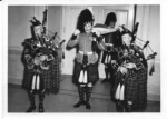 Pipe Majors Fraser and Archie Dewar piping in the Haggis at Burns Dinner at the Royal York Hotel in 1952. Sgt. Bill Elms in front carrying the Haggis, Drummer Lloyd …