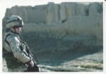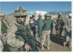 48th Highlander, Cpl Ed Ivens, stands in front of an Afghanistan mountain range in 2005. (prior accession No. P2054)