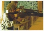 Cpl Ashan Corea, 48th Highlander, looks over the front of his rifle scope prior to a section attack. Highlanders were training with a US unit at Fort Knox. (prior accession …
