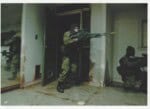Highlanders storm into a room practicing House clearing drills during Exercise Crimson Tide. Pte Rod Petrovic enters at the ready. P2059