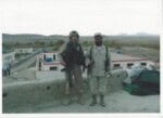 Cpl Irina Marga of the 48th Highlanders, poses for a photo with an Afghanistan National Army soldier on a roof top. 2007-2008. (Prior accession No. P2065)