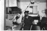 Master Corporal Brad Wood operating 42 set radio in back of Command Post probably at CFB Borden or Meaford, in 1980s or 1990s.