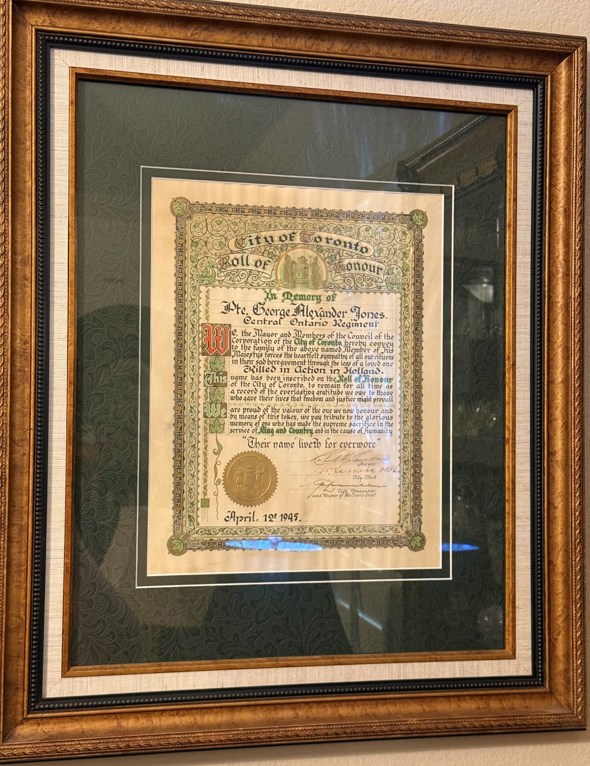 The writeup on our website for George Jones was done by soldiers in the active regiment who researched his service in advance of their trip to Apeldoorn and Holten in May this year. That is just one more way we try to keep the memory and honour alive within the regiment, and for all who visit our website. If you have a photo of George could you scan it and send it to me directly so that I may add it to his page.