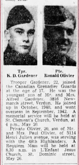 NOK: Son of Paul and Elvira Olivier, of 5114 Henri Julien St., Montreal, Province of Quebec.