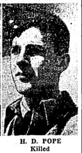 He was 20 years old, 33 days before his 21st birthday. He was survived by his Father and Mother Harold and Evelyn Lucy May Pope, also by his 4 siblings. Frank, John, George and Evelyn Pope.
