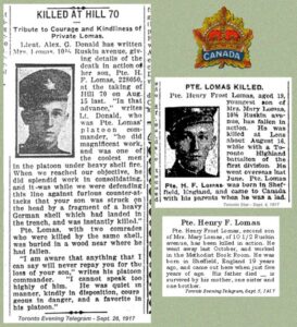 NOK: Son of Thomas Henry and Mary Lomas, of 877, St. Clair West, Toronto.